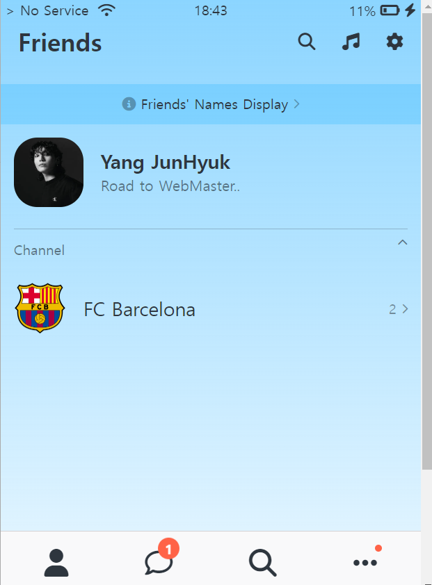 마찬가지로 상단바와 아래의 네비게이션 바가 똑같다.